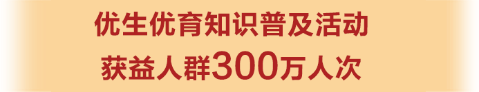 各级计生协开展妇幼课堂、家长课堂、知识讲座等1.5万场次,获益人群300万人次;开展亲子活动5700余场次,直接受益人数达14.4万人次;入户访视指导5.9万次,指导户数12.9万户;组织演出、比赛等主题宣教活动1600余场次,参与群众15.5万人次。