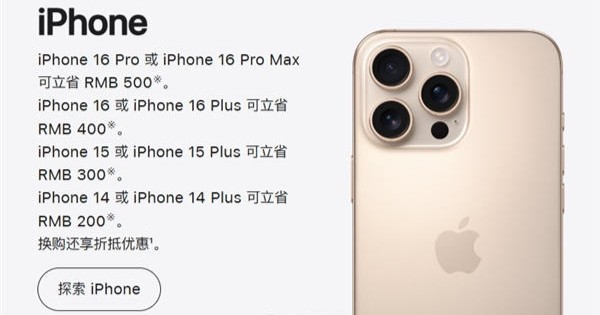 苹果官网显示,用户购买iPhone 16 Pro或iPhone 16 Pro Max可立省500元,