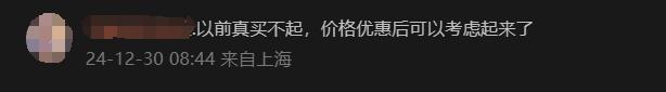 对此,有网友表示,“以前真买不起,价格优惠后可以考虑了。”
