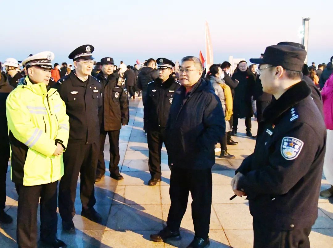 2025年1月1日5时许,副市长、市公安局局长李刚,市公安局政委王兴展、副局长林玺政到元旦迎日祈福大典活动现场,实地指挥、督导安保措施落实。全市各级公安机关快速行动,负责同志深入一线、靠前指挥,广大民警辅警坚守岗位、尽职尽责,督察部门跟进督导,指挥中心实时调度,有力保障了各项安保措施落实到位。