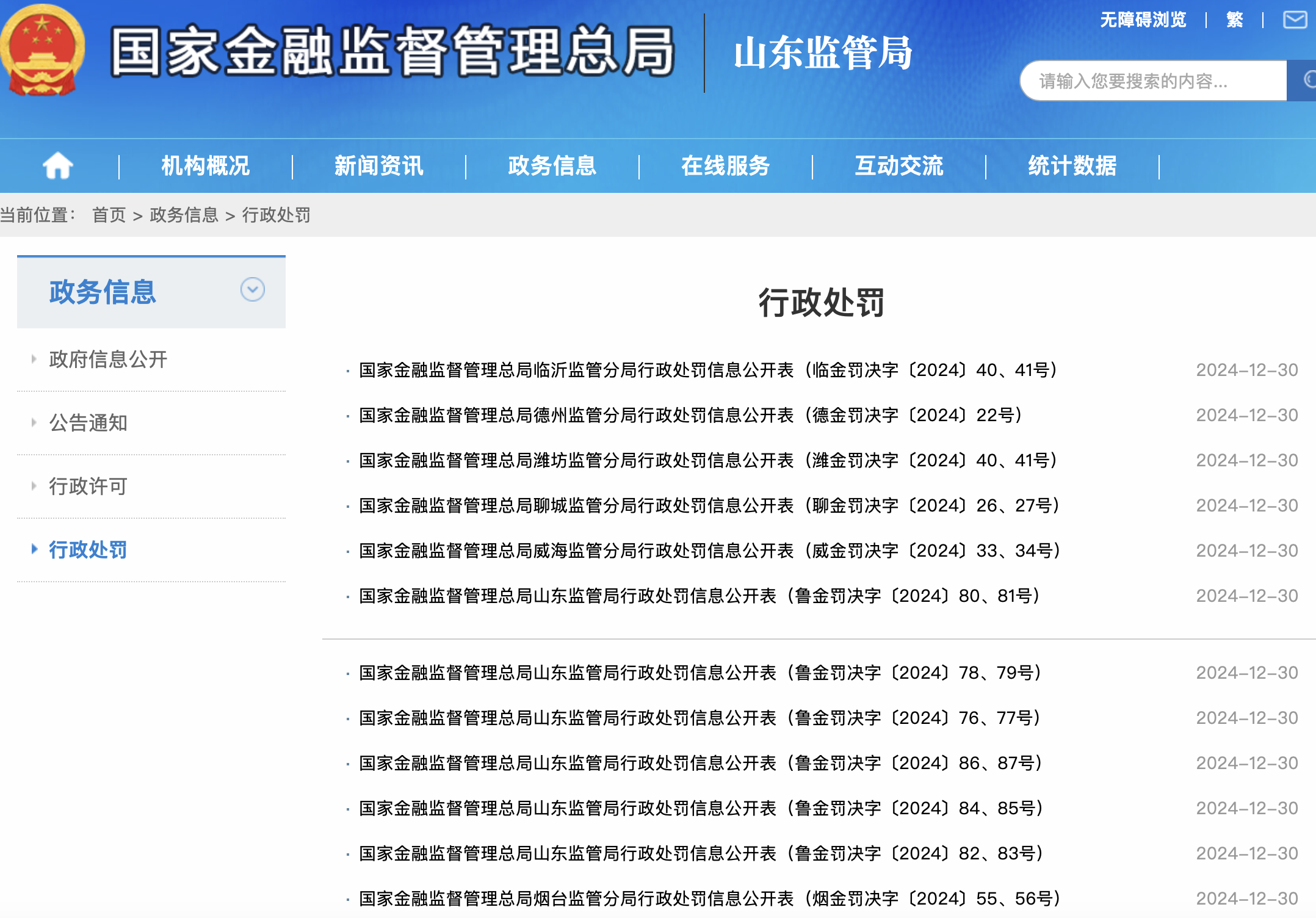 2024年12月30日,国家金融监督管理总局山东监管局发布行政处罚信息公开表,其中显示多家保险机构及相关责任人因违规而受到处罚