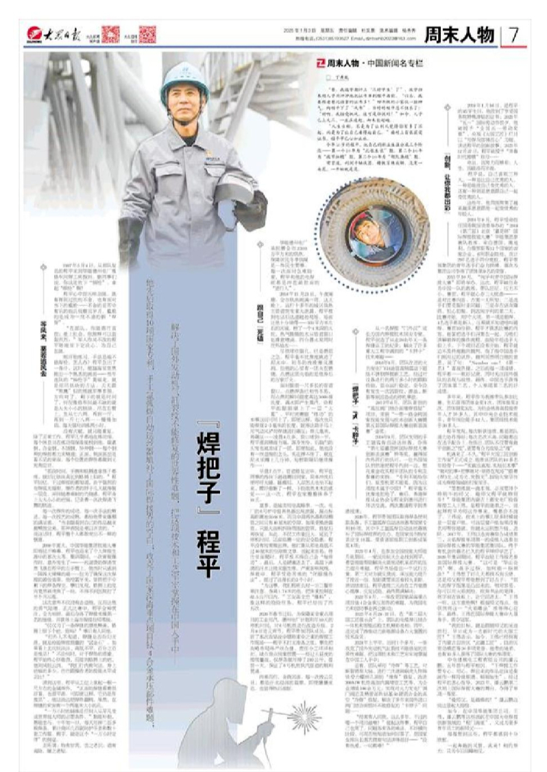 从一名焊接“门外汉”成长为国内焊接技术顶尖专家,程平创造了从业20余年无一条焊缝返工的纪录,解决了许多重大工程中遇到的“卡脖子”技术难题——