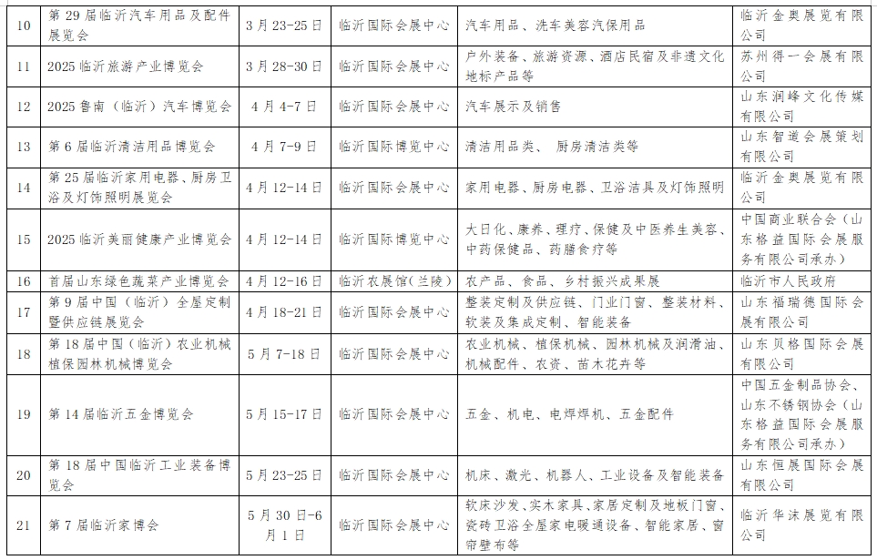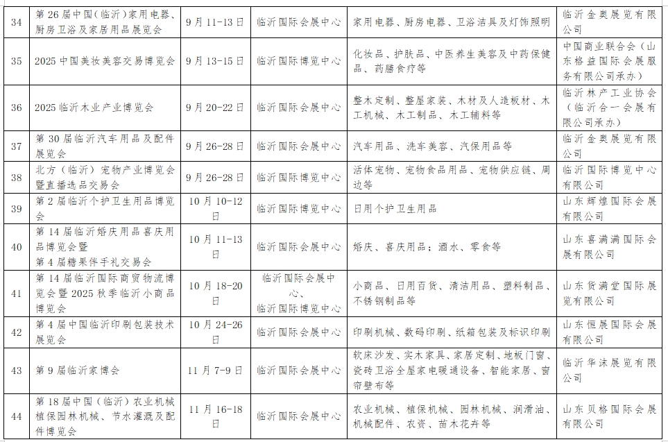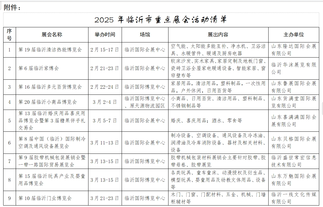 2025年临沂市会展活动超150场,重点展会清单公布!