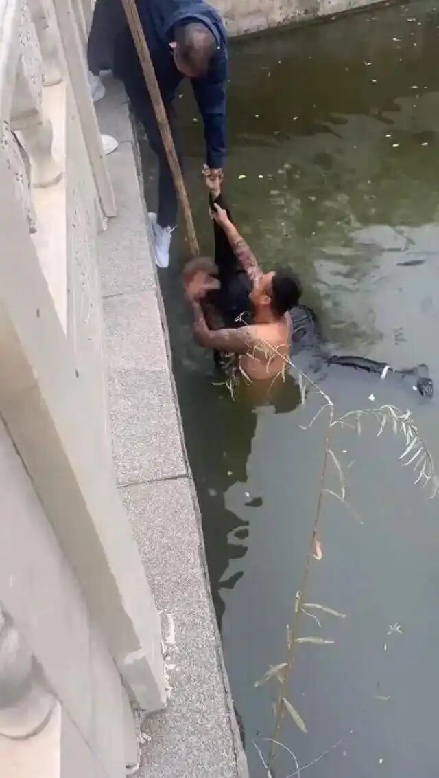 2024年10月30日15时许,高唐县鱼邱湖街道文昌苑小区小伙赵金良跳河勇救落水女孩。