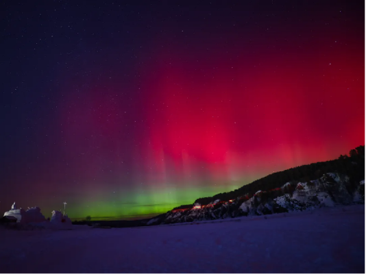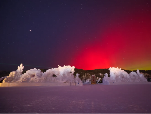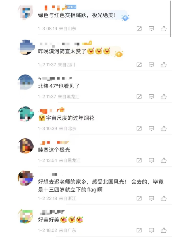 要想在我国看到绿色极光,则要等到太阳活动更加强烈,高能粒子轰击到中纬度地区距地面100千米左右的大气中时才有可能。去年12月,我国漠河地区就曾出现过绿色极光,间接说明了当时地磁暴事件的强烈程度。而漠河也处于中国最北端,相较国内其他能看到极光的地方纬度更高,因此出现绿色极光可能性也更大。