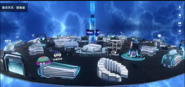 壹点天元元宇宙空间是多功能、多场景的元宇宙空间,整个空间占地面积高达30万平方米,由天元发布厅、天元展览馆、天元鲸鱼座、中心地标、传送门、时空隧道、音乐长廊、服务台、广告牌、指示牌、互动区、娱乐区等众多元素组成,支持智能对话、拍照打卡、私信社交、探寻任务等多种功能。整个空间设计科幻感强、沉浸感足、体验感好,炫酷多彩,具有浓浓的元宇宙风。