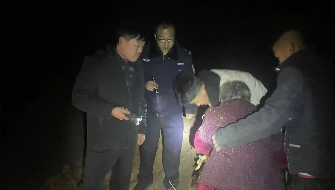2024年12月3日,胶州市公安局杜村派出所接到群众陈先生的报警称其90多岁的母亲刘大妈于当日15时左右离家,至今未归,老人右眼失明且患有阿尔兹海默症,情况十分紧急。接警后,民警第一时间赶到现场,根据现场情况制定搜寻计划,部分警力通过摸排视频寻找老人的线索,另一部分警力则联合村民在村内及周边区域展开搜寻。当地地势复杂,给搜寻工作带来了不小的困难,天色渐晚,气温越来越低,考虑到刘大妈的身体,民辅警丝毫不敢耽搁,进一步扩大搜寻范围。“找到了,老人在这里!”经过4个多小时的不懈努力,最终在王家屯村村南与高密市交界处的土坑中找到了走失的老人。随后,民辅警立即进行救援,“大姨,我扶着您起来!”搜寻队员将老人扶到安全区域,安抚好其情绪,随后将老人交至亲属手中。“天这么冷,幸亏找到了!”看着母亲并无大碍,陈先生对民辅警连连道谢。