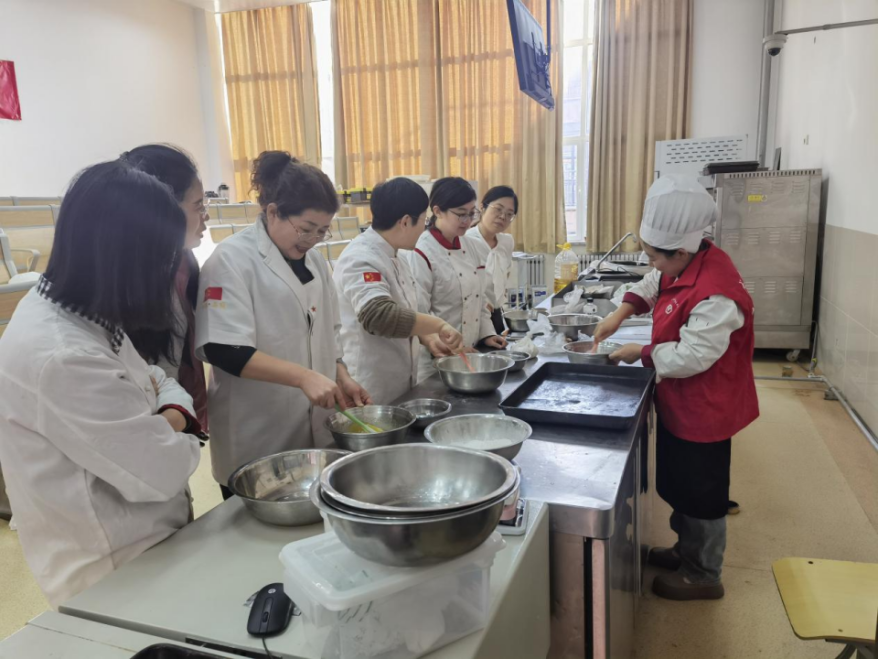 开展“技能惠职工”桃酥制作活动。教学第三党支部党员教师徐姣,带领学生为学校教职工开展桃酥制作技能培训,通过讲解示范和动手制作的方式,让大家在体验劳动乐趣的同时,实操并熟悉了桃酥制作技能。