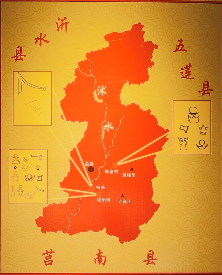 现藏于国家博物馆大口尊:高59厘米, 口径38厘米,1979年陵阳河出土。所刻符号仿佛是在一座山上矗立一株大树,具有抽象与写实的双重特点。
