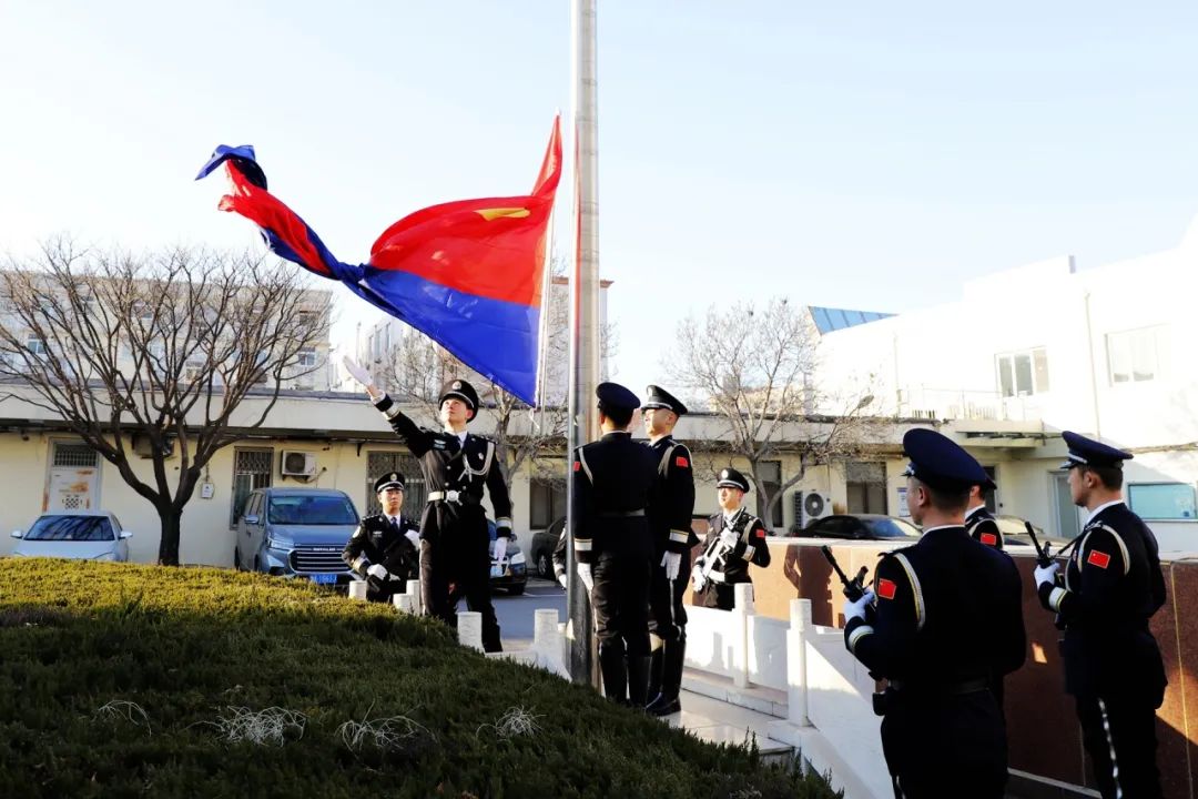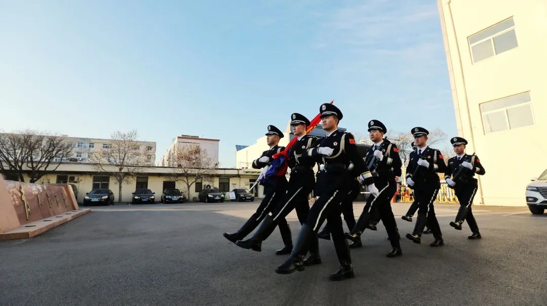 上午9时,升旗仪式正式开始,全体人员整齐列队、警容严整,等待庄严时刻的到来。随着“迎警旗”口令的下达,警旗护卫队迈着坚定的步伐,护卫着警旗走向升旗台。