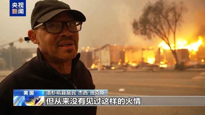 洛杉矶县的下水道、电力和交通系统均遭受严重破坏,截至9日上午10时,已有超过42万用户断电。山火还引发了严重的空气污染,多个学区因此宣布停课。(央视新闻图)