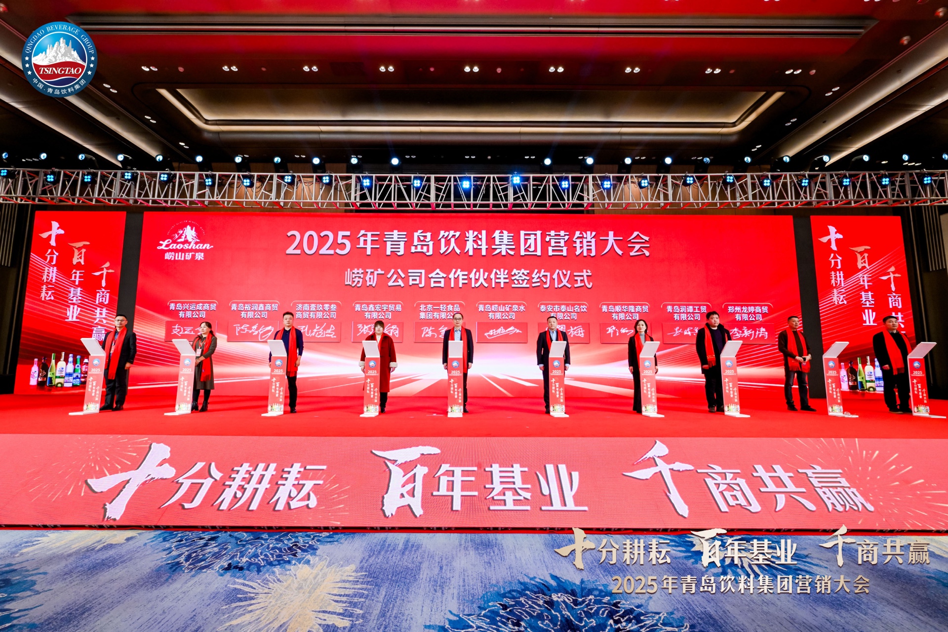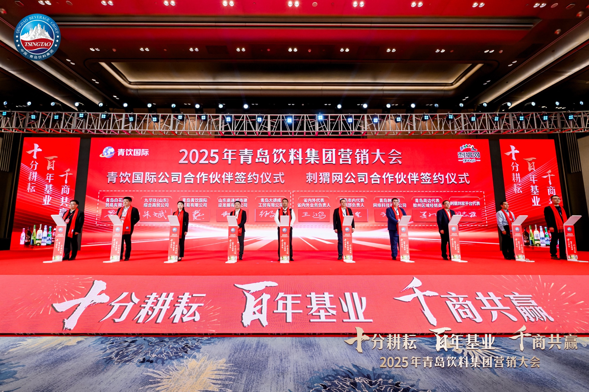 十分耕耘,百年基业,千商共赢。2025年1月10日,2025年青岛饮料集团营销大会在青岛国际会议中心举行。青岛饮料集团相关领导、来自全国各地的700余名经销商齐聚一堂,就青岛饮料集团旗下各产品线2025年的发展战略和规划建言献策。青岛饮料集团发布“新五年创造”、“十百千”战略规划,同时还启动集团“3+3+N”产品战略暨刺猬到家平台上线发布,并且与经销商代表签署年度合作目标。