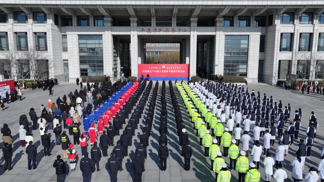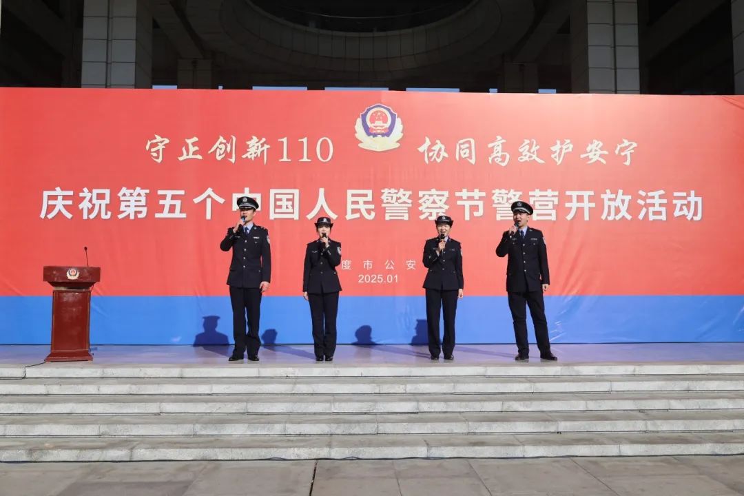 1月10日上午,平度市市民服务中心广场彩旗飘扬,警歌嘹亮。平度市公安局隆重举行“守正创新110,协同高效护安宁”警营开放活动,警民同庆第五个中国人民警察节。