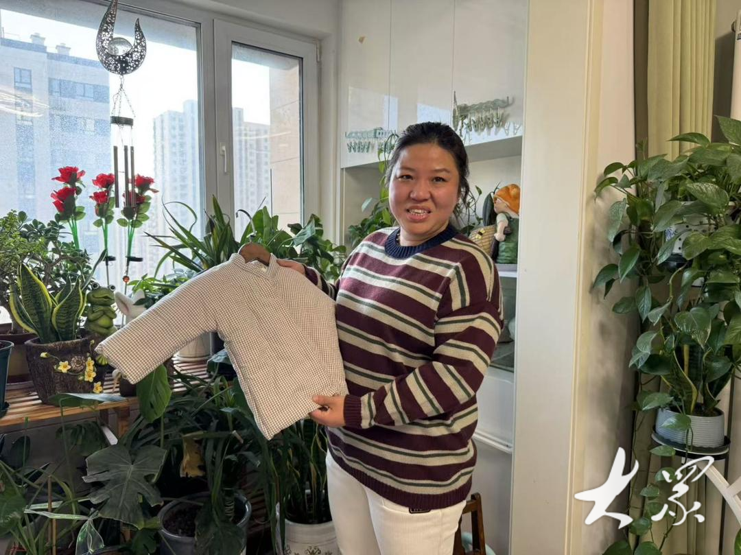 郭店大集上,娄茜展示亲手缝制的手工棉衣。