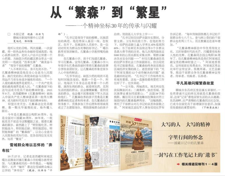 夜班点评:借用“孔繁森”名字,从“繁森”到“繁星”,巧妙展现了孔繁森精神的传承与弘扬。