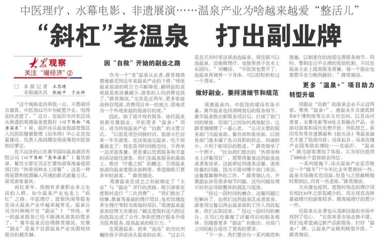 夜班点评:巧用热词“斜杠”形容“整活儿”的温泉产业,非常形象,读起来也颇具节奏感。