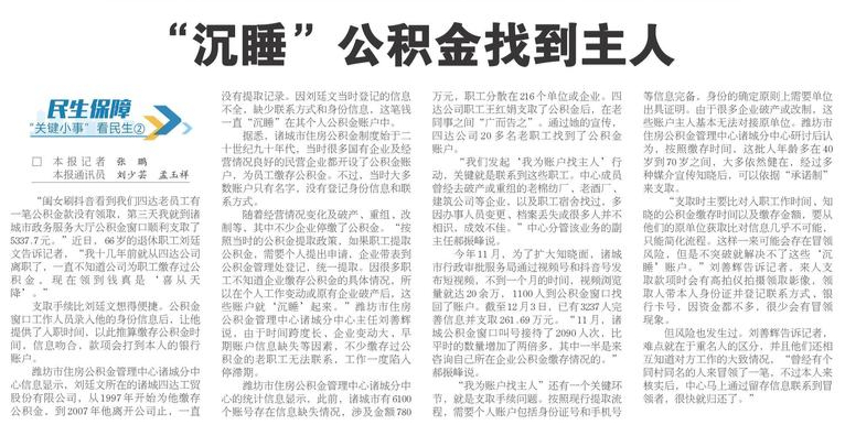 ◎“沉睡”公积金找到主人