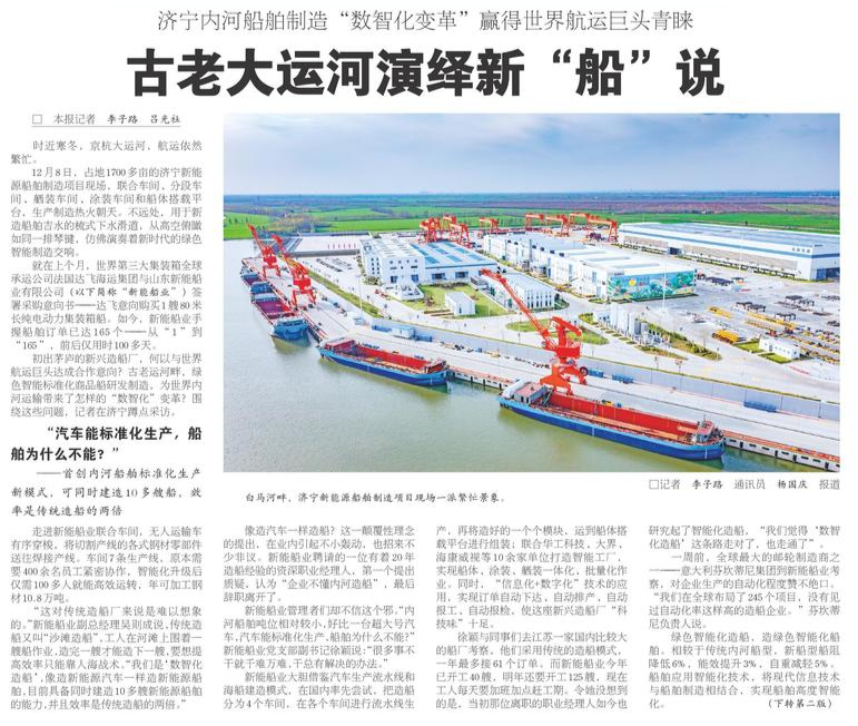◎济宁内河船舶制造“数智化变革”赢得世界航运巨头青睐