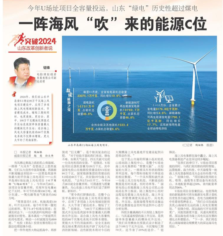 ◎今年U场址项目全容量投运,山东“绿电”历史性超过煤电