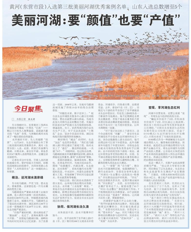 ◎黄河(东营市段)入选第三批美丽河湖优秀案例名单,山东入选总数增至5个