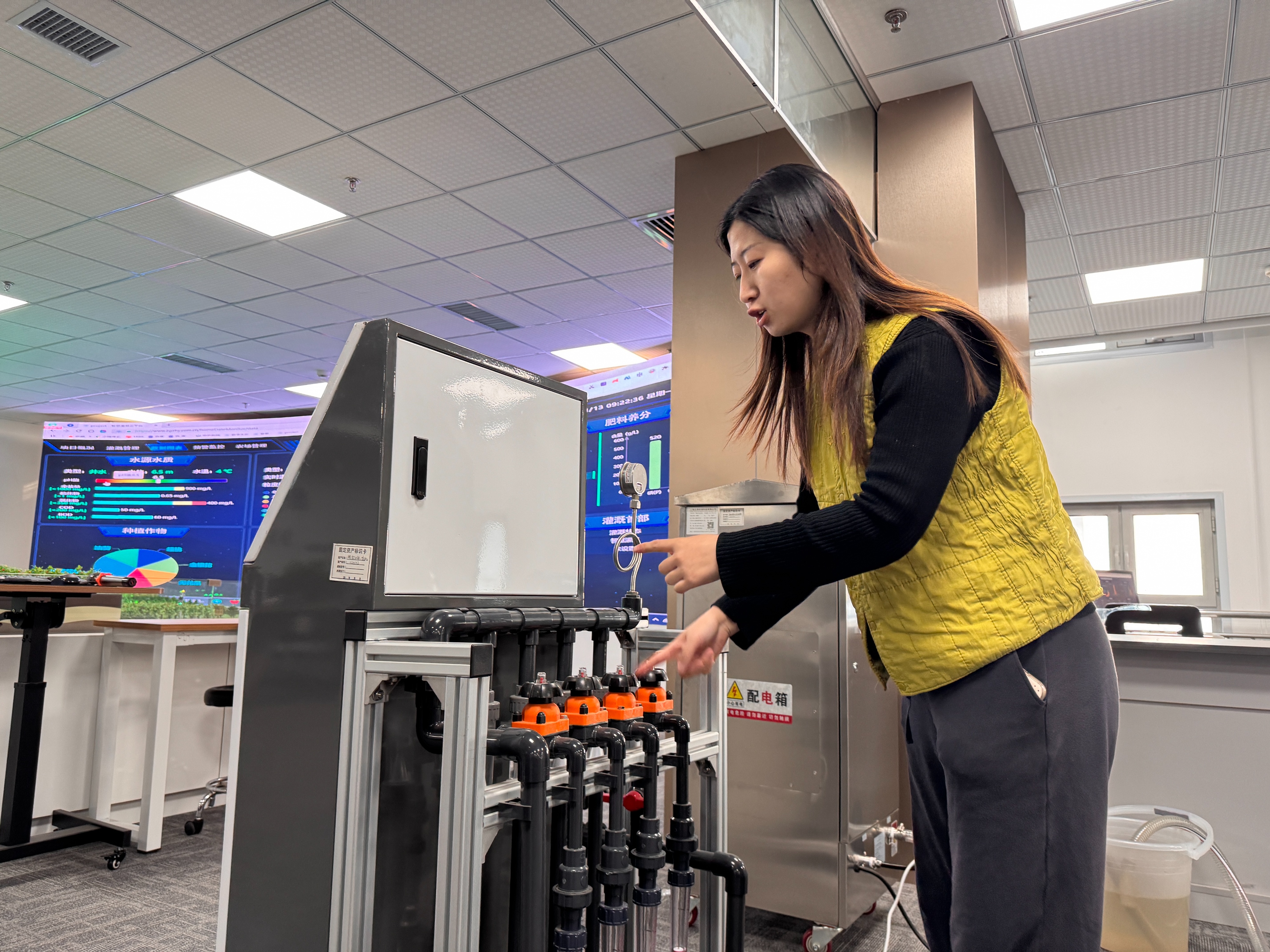 工作人员介绍“中农数院”研发的智能水肥一体机。