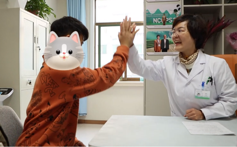 今天亮亮结束了第一阶段的治疗,准备出院,薛主任建议他回去帮妈妈干一些家务,每天坚持锻炼,再找个辅导班把以前拉下的内容补补,亮亮和薛主任击掌答应了。