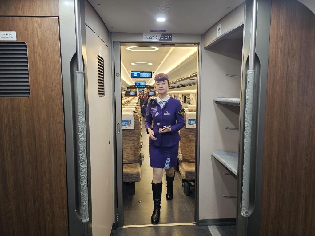 每走进一节车厢,白俊来会迅速环视,遇到带孩子的旅客,她会提醒一句:“放在小桌板上的敞口热水杯要盖紧盖子。”遇到单独出行的老人,她会主动上前询问是否需要帮助。