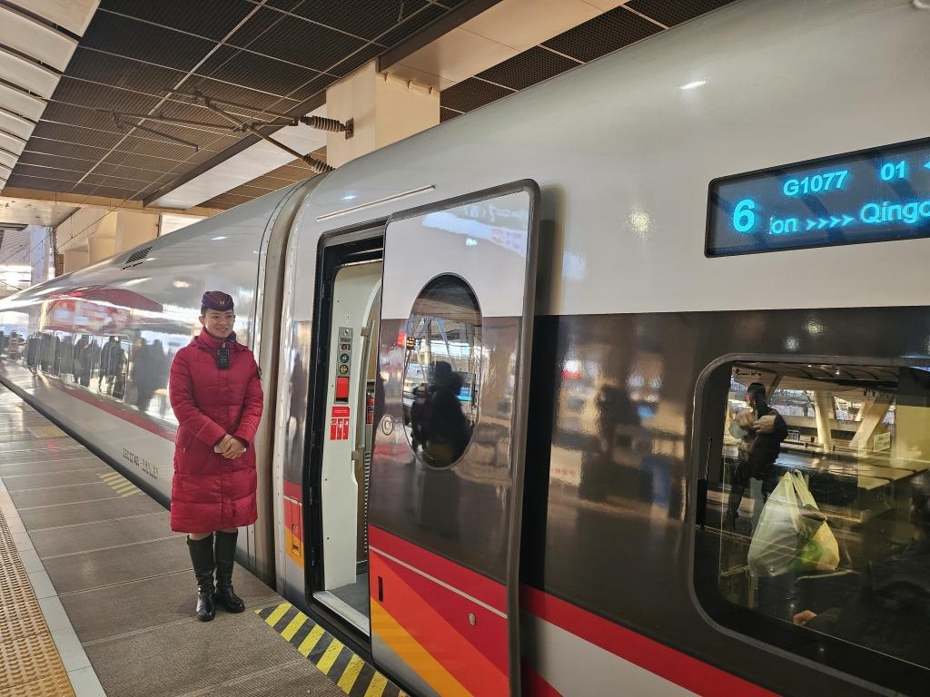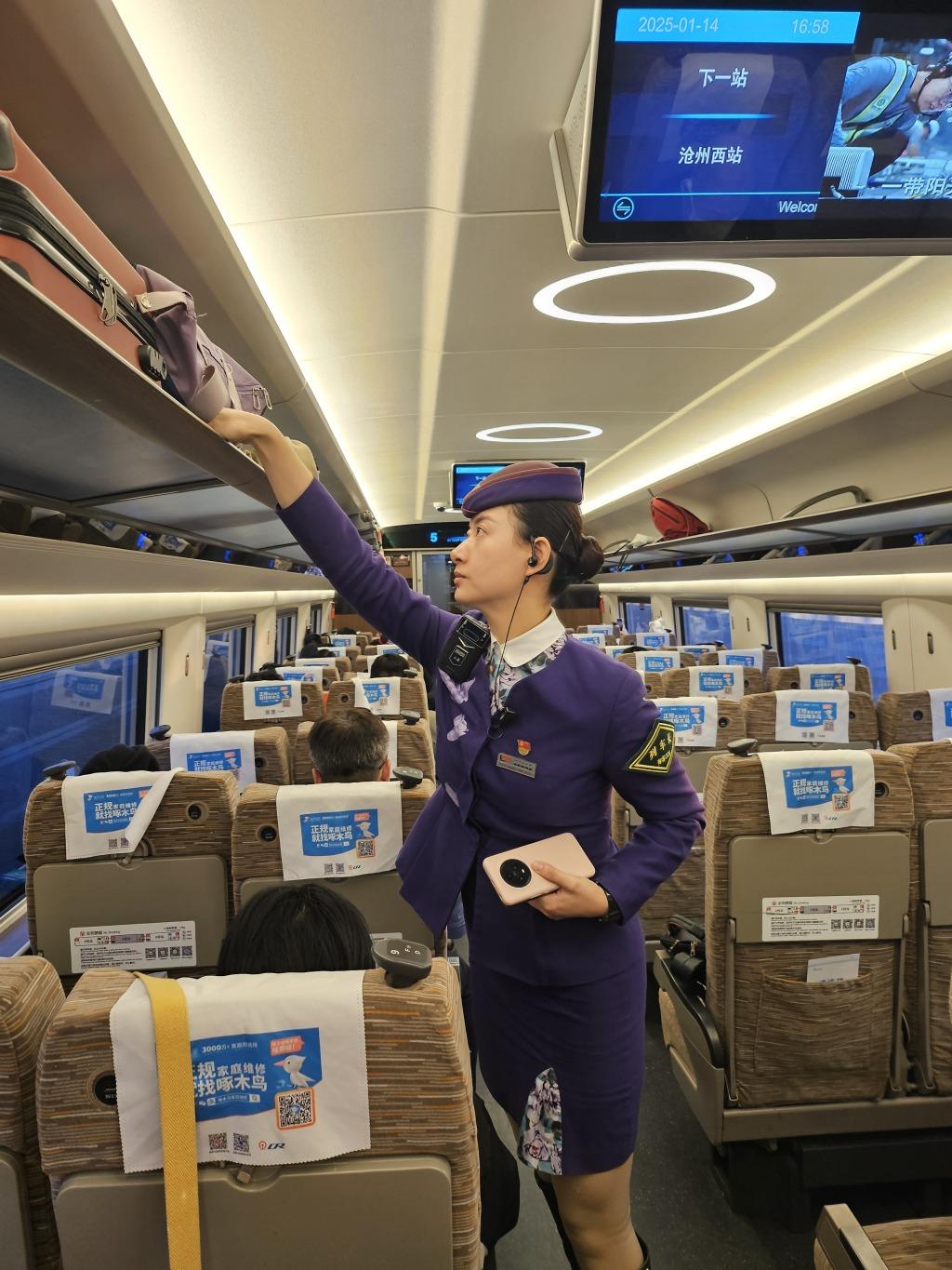 2012年,入职不足两年的白俊来就考取了列车长,“从最初的普速列车,到和谐号动车组,再到复兴号动车组,我先后担任过7种车型的列车长。”谈起春运经历,她感慨万千,“青岛到北京的列车运行时间,压缩至现在的不到4小时,铁路发展真的很快!”