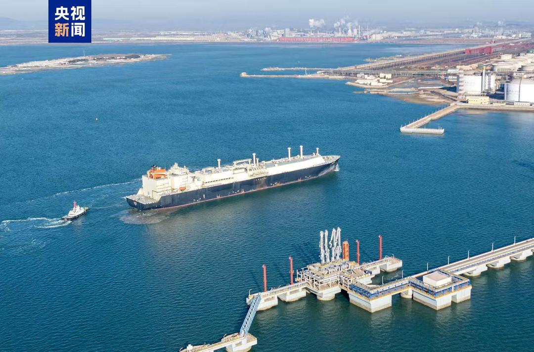央1月15日,北方地区参与春运能源运输的首艘LNG(液化天然气)运输船“巴布亚”轮,安全靠泊在青岛董家口港。其满载的7.8万吨液化天然气,将在24小时内完成卸载,并气化为超过1亿标准立方的天然气,满足超600多万户家庭一个月用气需求。