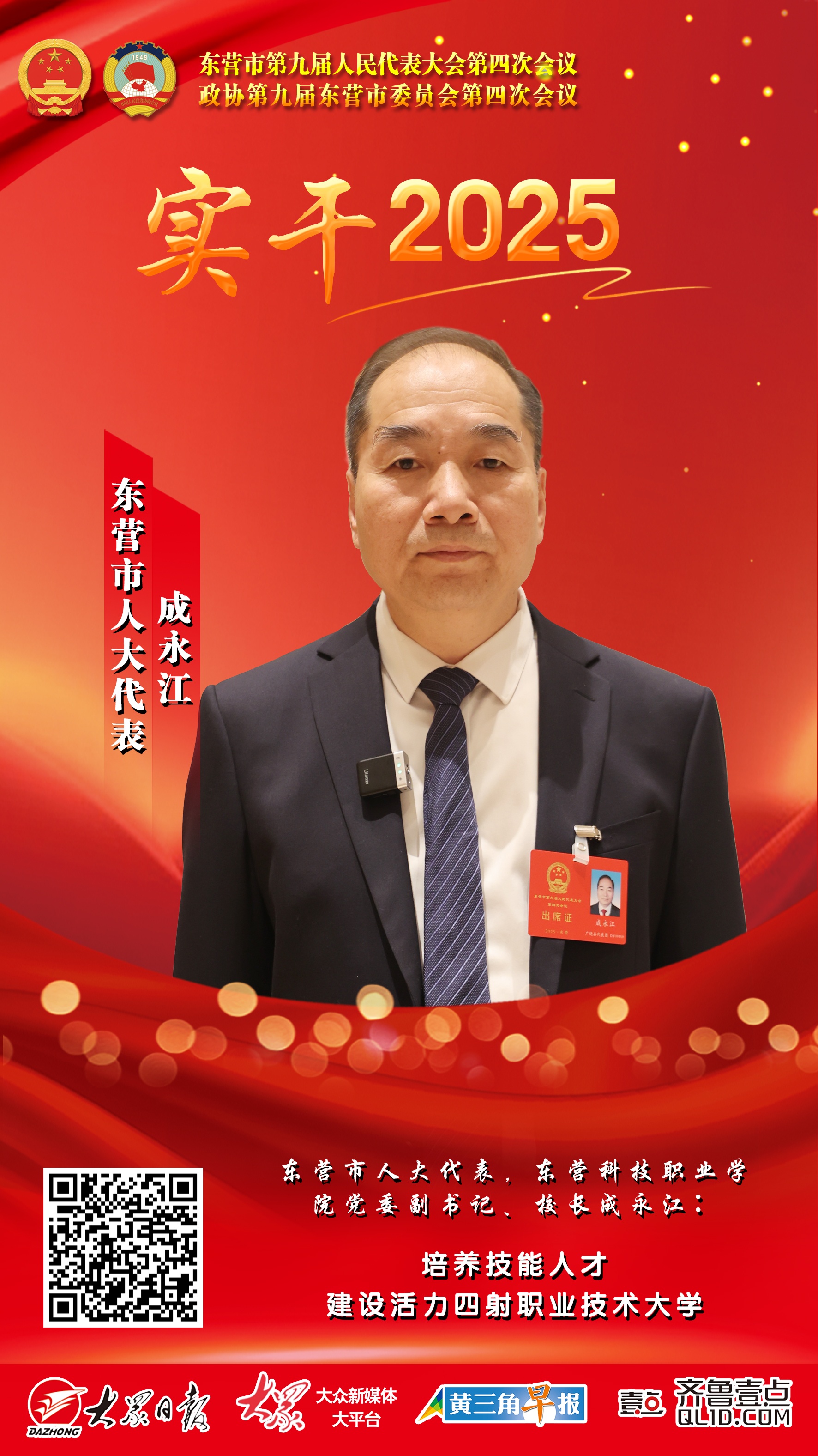 海报|东营市人大代表,东营科技职业学院党委副书记、校长成永江:培养技能人才,建设活力四射职业技术大学来源:大众新闻2025-01-16 09:08:53原创责任编辑:李广寅大众新闻原创内容,未经授权不得转载转载事宜请联系大众新媒体大平台 联系电话:0531-85193469