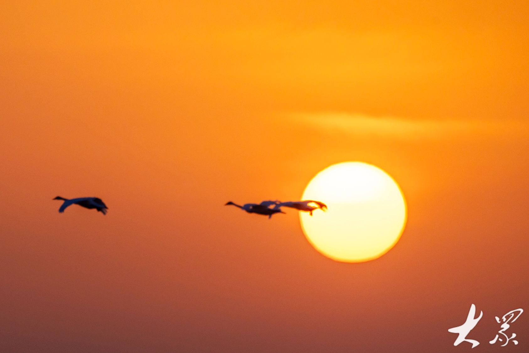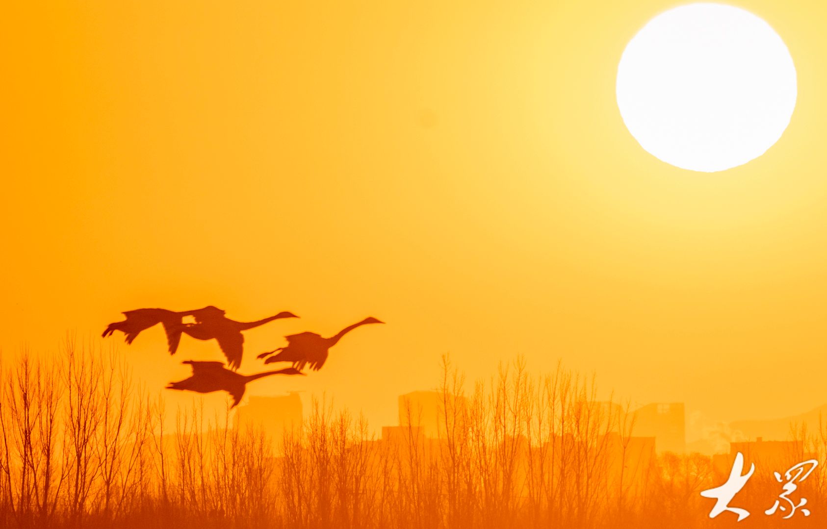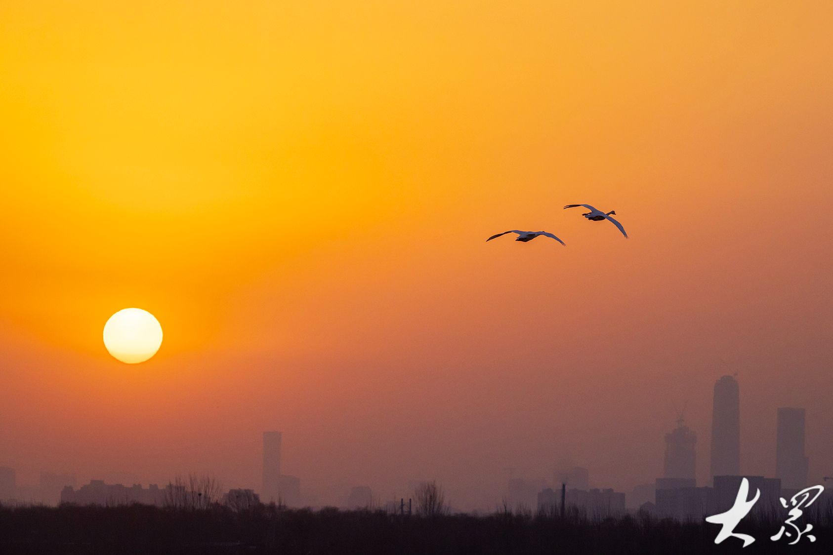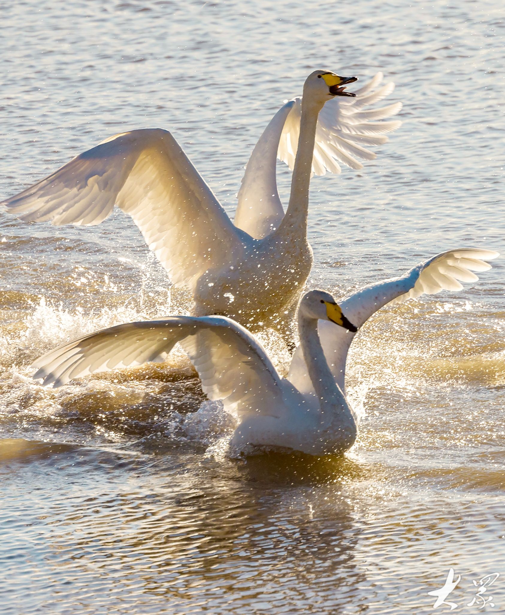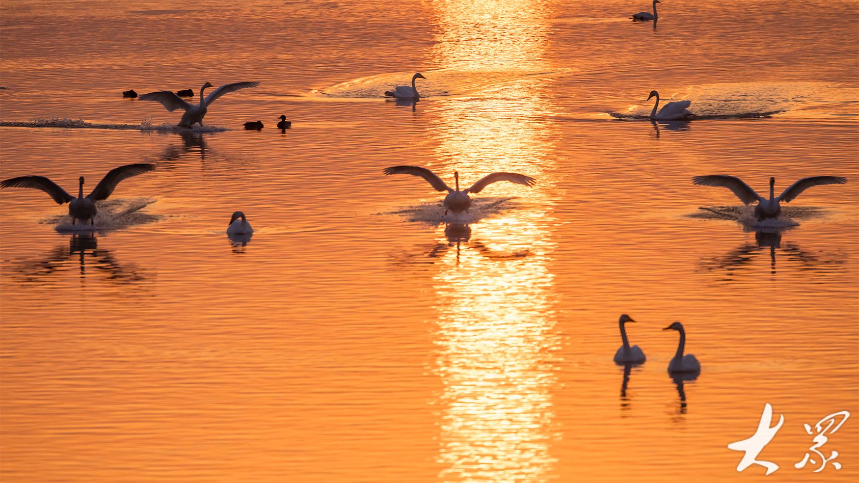 春节将至,济南鹊山水库沉沙池呈现出一幅“天鹅迎春图”,为泉城送来了新春的祝福。红彤彤的朝阳,碧蓝的天空,精灵一样洁白的天鹅忽而引颈歌吟,忽而翩翩起舞,美轮美奂,让人陶醉在生动美妙的画卷之中。