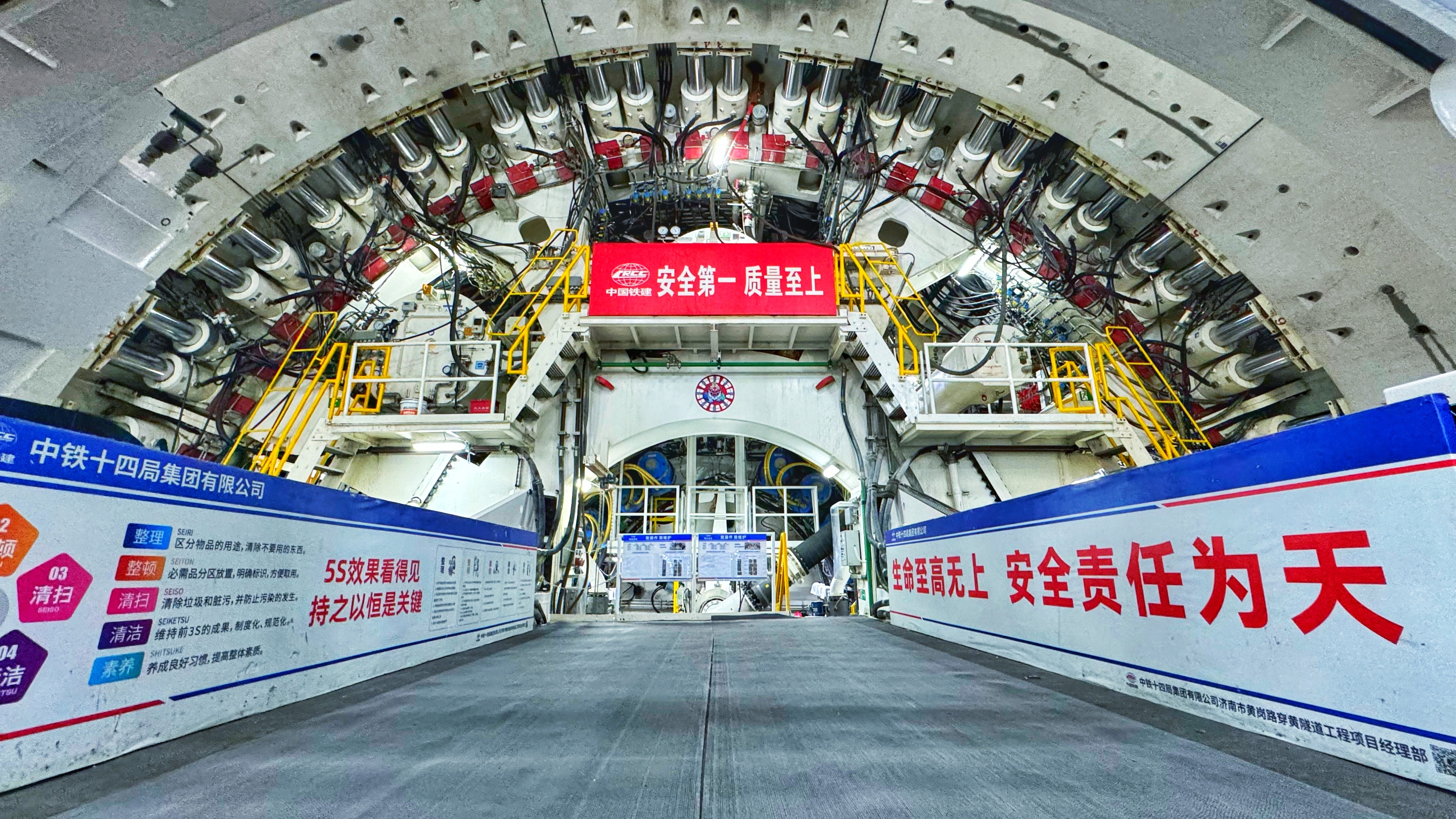 2024年9月1日,直径17.5米的“山河号”盾构机刀盘缓缓转动,由中铁十四局集团承建的济南黄岗路穿黄隧道正式开始盾构掘进,标志着世界上最大直径的水下盾构隧道开启穿越黄河之旅。穿山越海离不开被称为“钢铁巨龙”的盾构机。这条“钢铁巨龙”是如何轻松破土穿岩的?1月10日,记者走进了盾构掘进现场。
