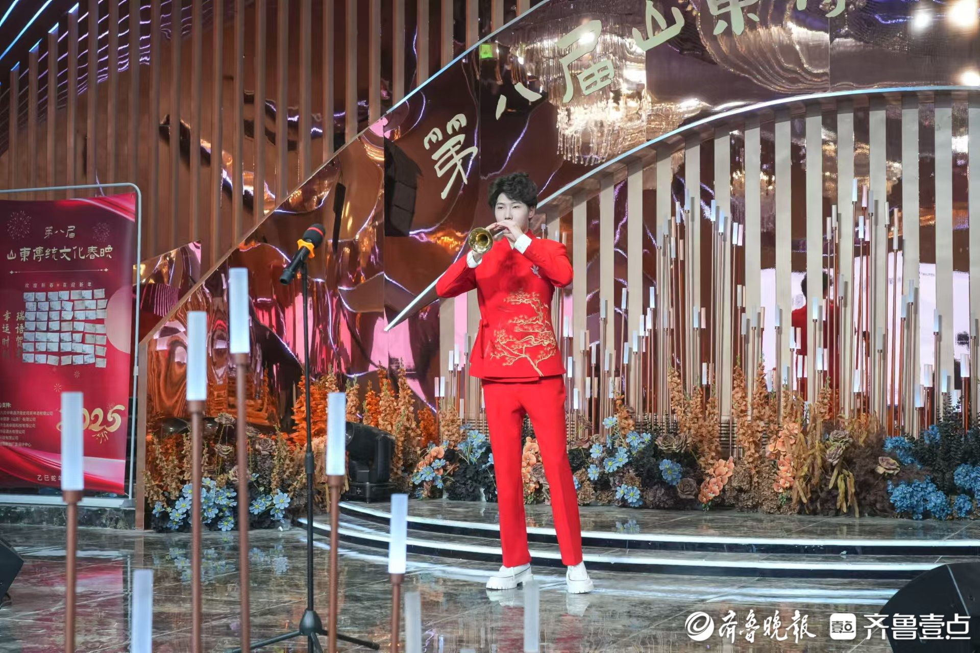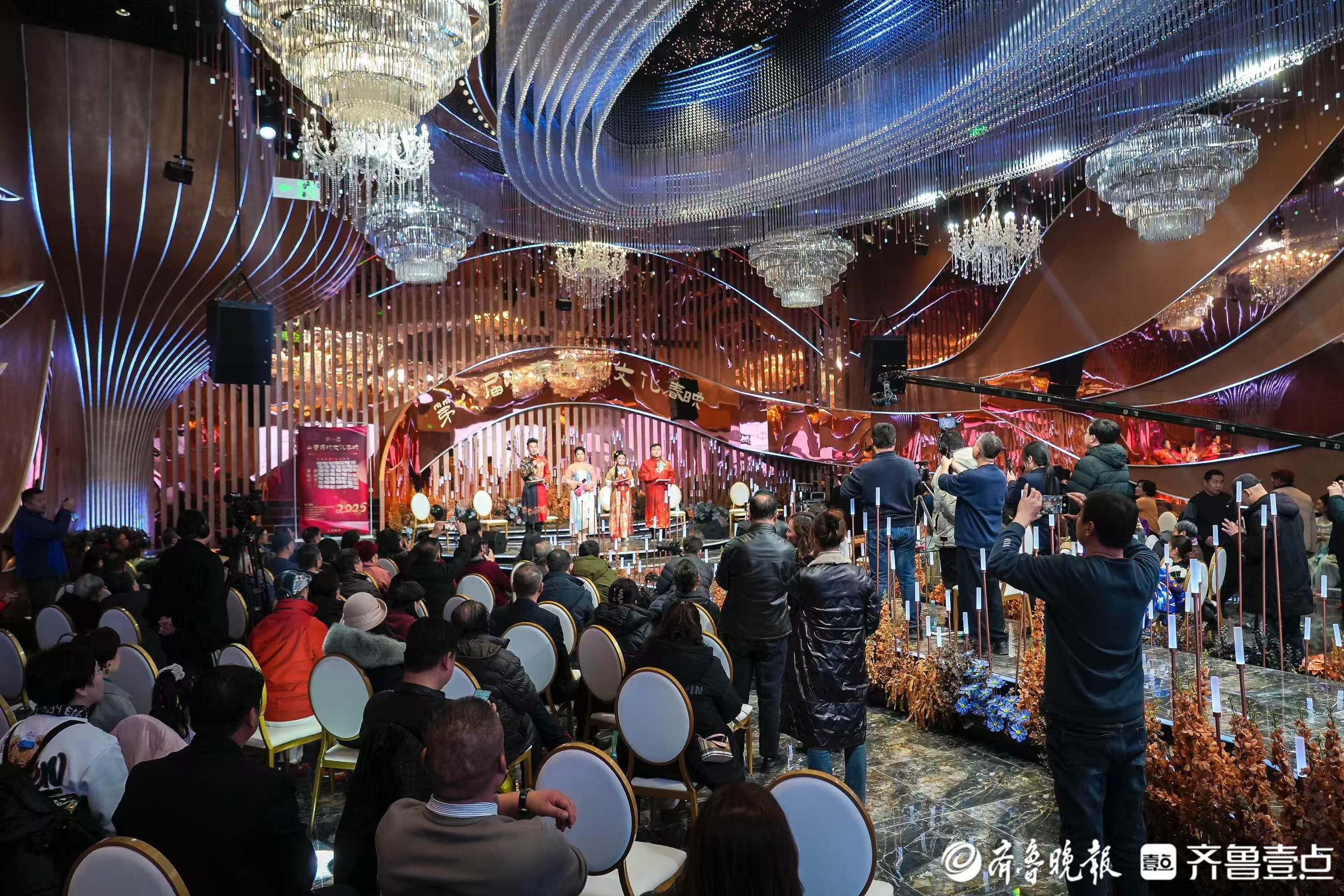 2025年1月17日,第八届山东传统文化春晚在济南天禧宝格莉文艺宴会酒店流金岁月厅盛大举行。本次活动以“传承齐鲁文化,共迎新春佳节”为主题,通过 140 多家融媒体联动直播,吸引了众多观众在线上线下共同参与,为大家带来了一场精彩纷呈的文化盛宴。