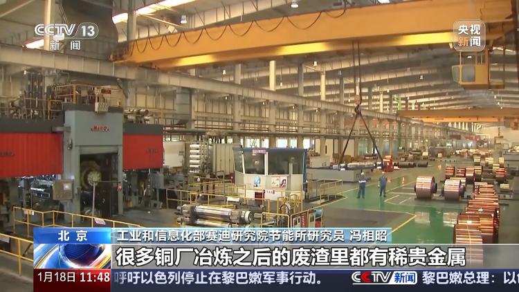 工业和信息化部赛迪研究院节能所研究员 冯相昭:高附加值更是关注重点。很多铜厂冶炼之后的废渣里都有稀贵金属,想要提取出来肯定有难度,推动有色金属再生资源利用,不仅能减少对原生矿产资源的依赖,降低开采成本,还能减少环境污染和土地占用,具有多重环境经济社会效益。