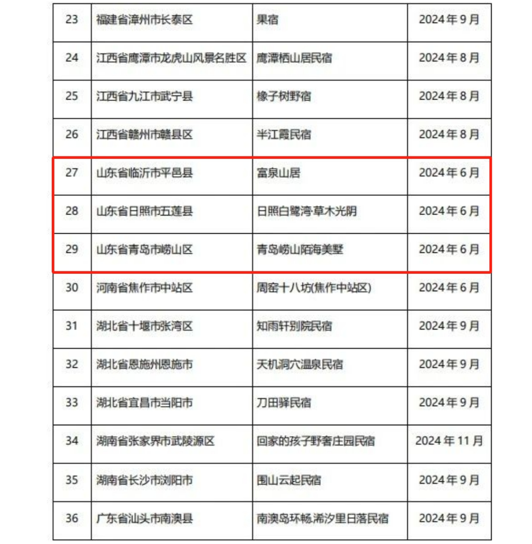国标民宿:山东甲级3家、乙级4家,点赞!