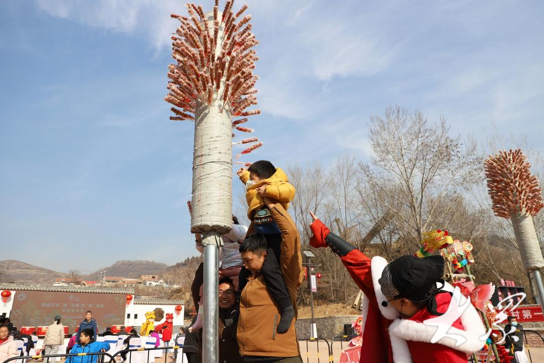 只要你敢“够” 糖葫芦就管“够”,活动设置三个4米巨型糖葫芦塔,参与者需拿着集齐汶源十吃的集章卡到此,各凭本事自行摘取糖葫芦。现场,有人一举夺得了42串糖葫芦,分享给身边的小伙伴。