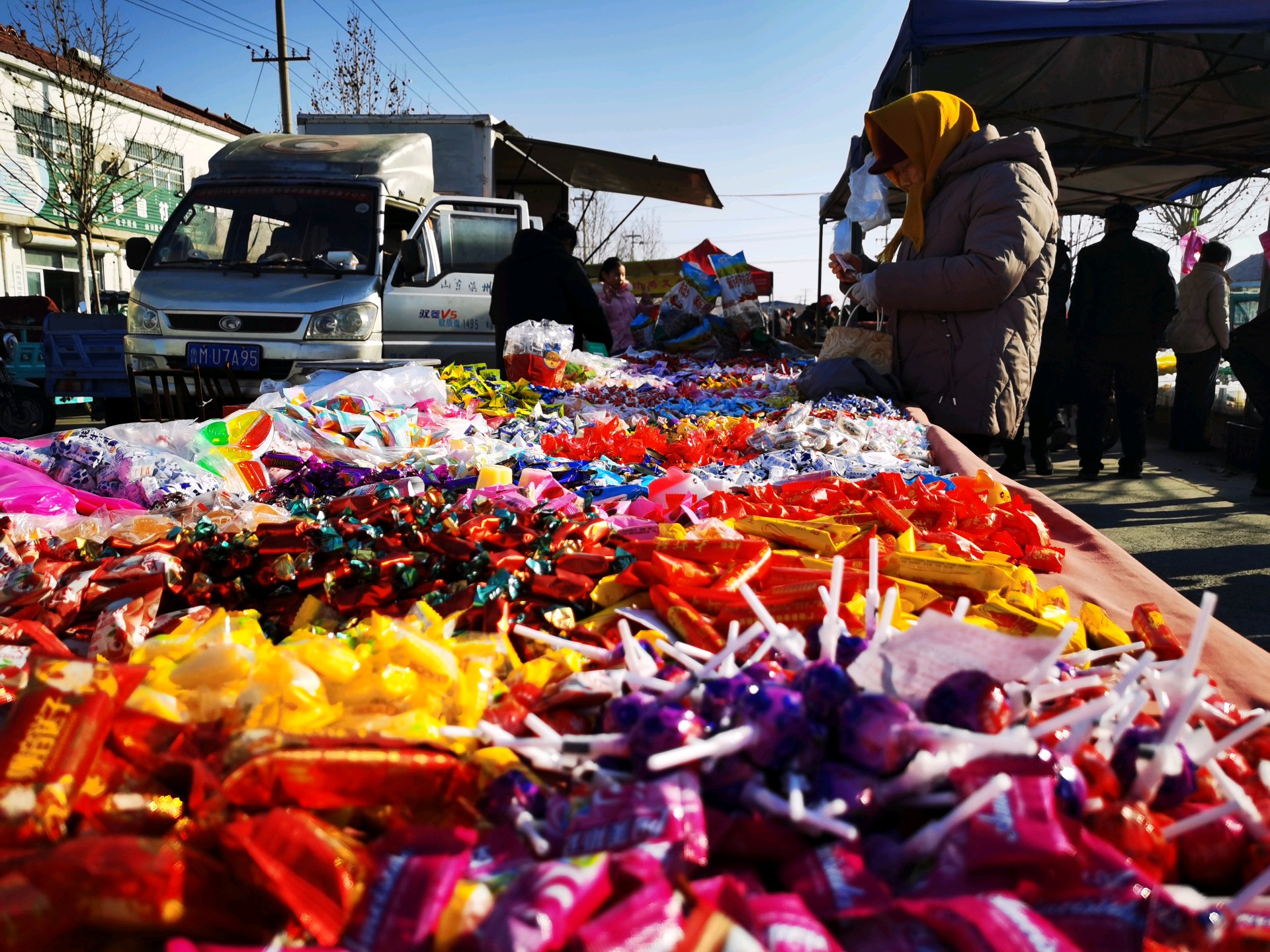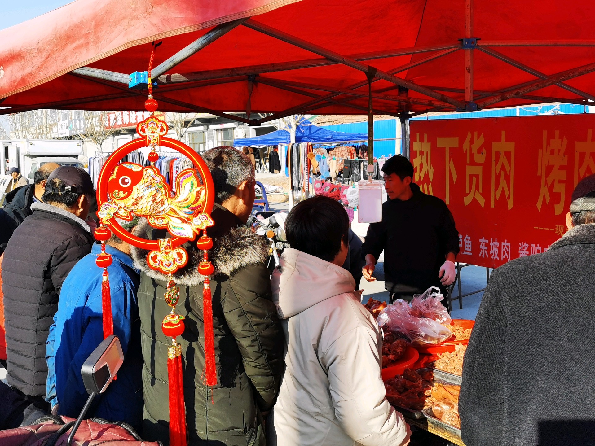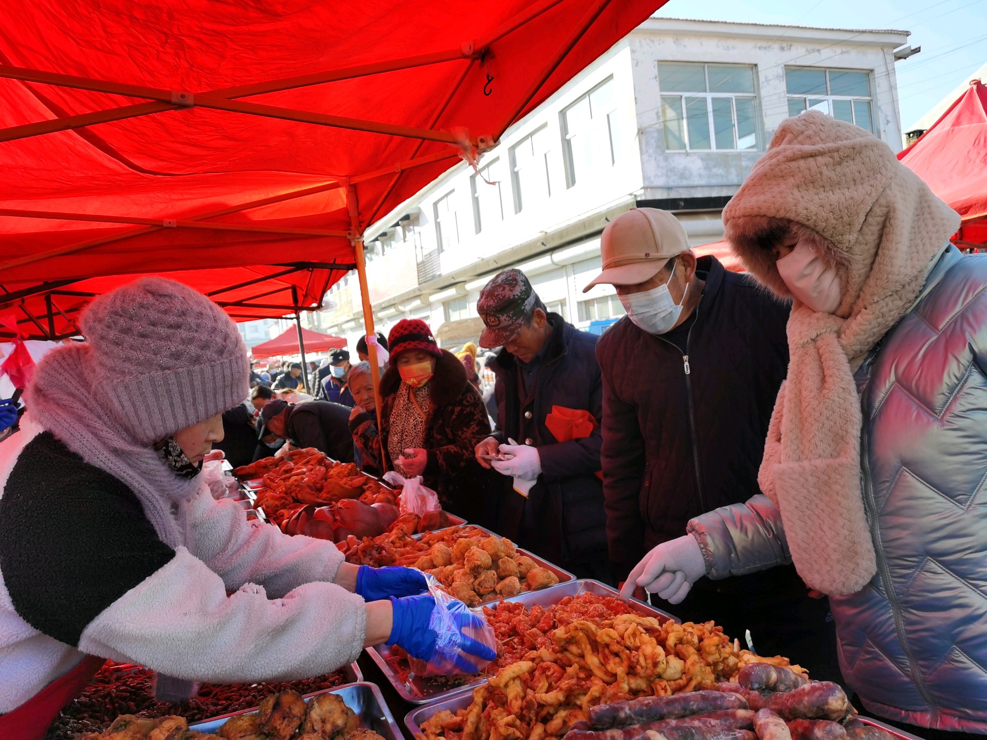 临近中午,赶集的群众络绎不绝,叫卖声、讨价声、欢笑声此起彼伏,处处洋溢着“年”的气息。