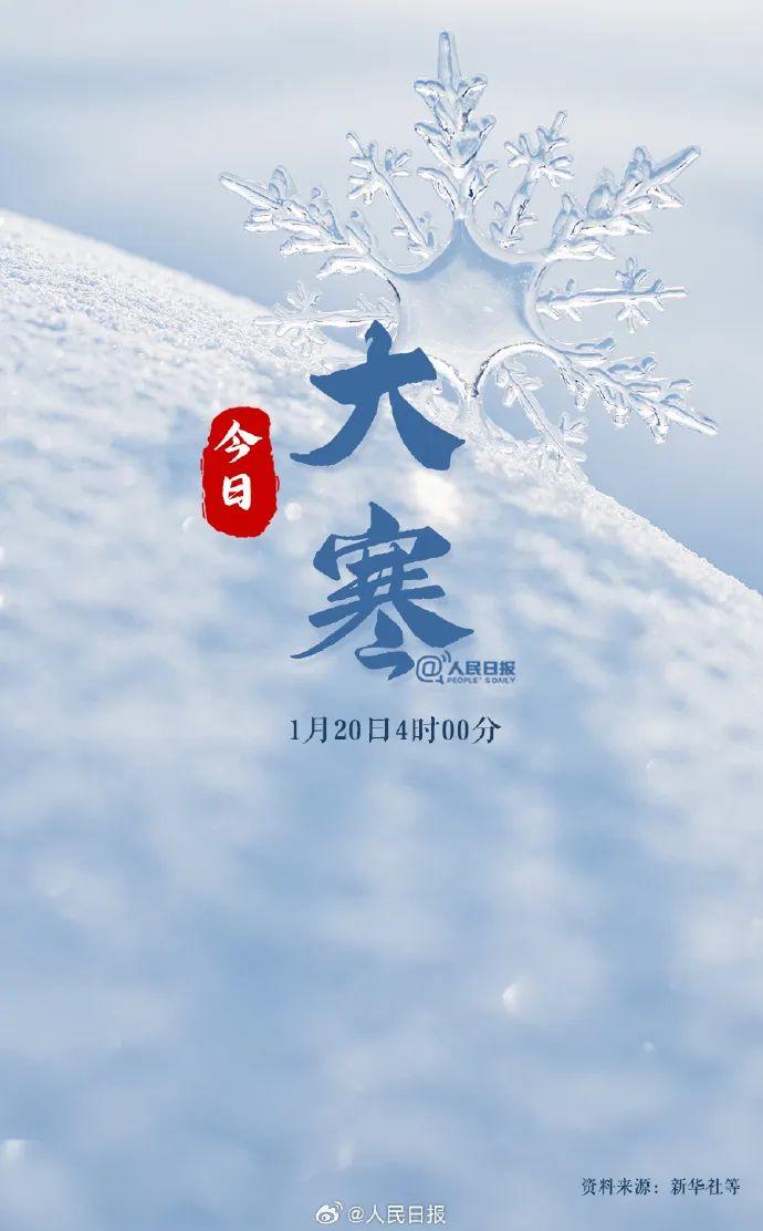 ①北京时间1月20日4时00分迎来大寒节气。②今年大寒始于“数九”中的“四九”第四天,止于“五九”第八天。③大寒再冷,也挡不住春的来临。下一个节气就是立春了。④“过了大寒,又是一年”。后天就是北方小年,春节的气氛也逐渐浓烈,你准备好过年了吗?一起期待新春的到来! (摘自《人民日报》手机客户端)