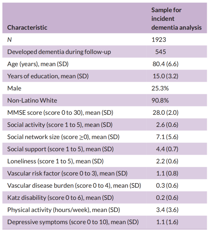 最终分析共纳入1923名基线无痴呆症的老年人,平均年龄为80.4岁,平均随访时间6.7年。随访期间,545名参与者确诊痴呆症。