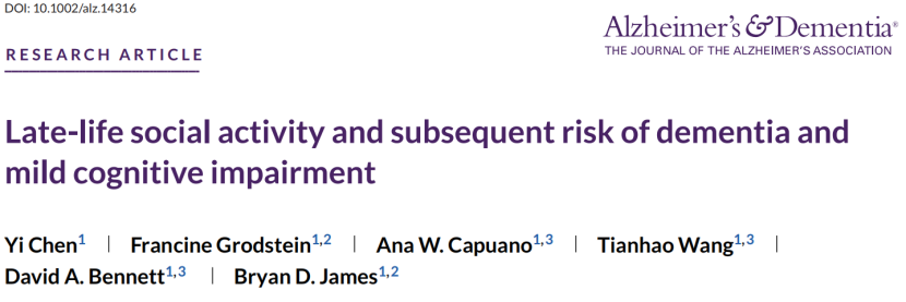 在这些社会参与中,社交活动是认知健康的一个重要风险因素。相较于其他方面,社交活动更容易进行群体层面的干预。