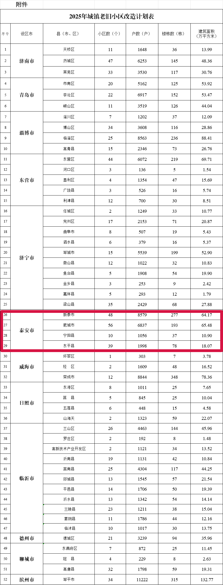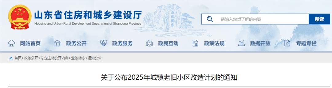 近日,山东省住房和城乡建设厅网站发布关于公布2025年城镇老旧小区改造计划的通知,详情如下: