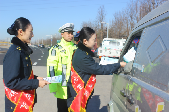 青岛高速集团平度路段工作人员携手交警部门,在高速公路沿线重要站点及繁忙的服务区,组织了一场高速公路行车安全知识宣传活动。他们将一份份精心制作的宣传册递到过往司乘人员手中,这些宣传册犹如一本本实用的“出行宝典”,涵盖了交通安全知识、高速行车的关键注意事项以及春运期间最新的路况信息等内容。工作人员与交警们一边发放,一边耐心地为司乘人员讲解重点,用细致的服务助力大家增强安全意识,为春运旅途筑牢安全防线。
