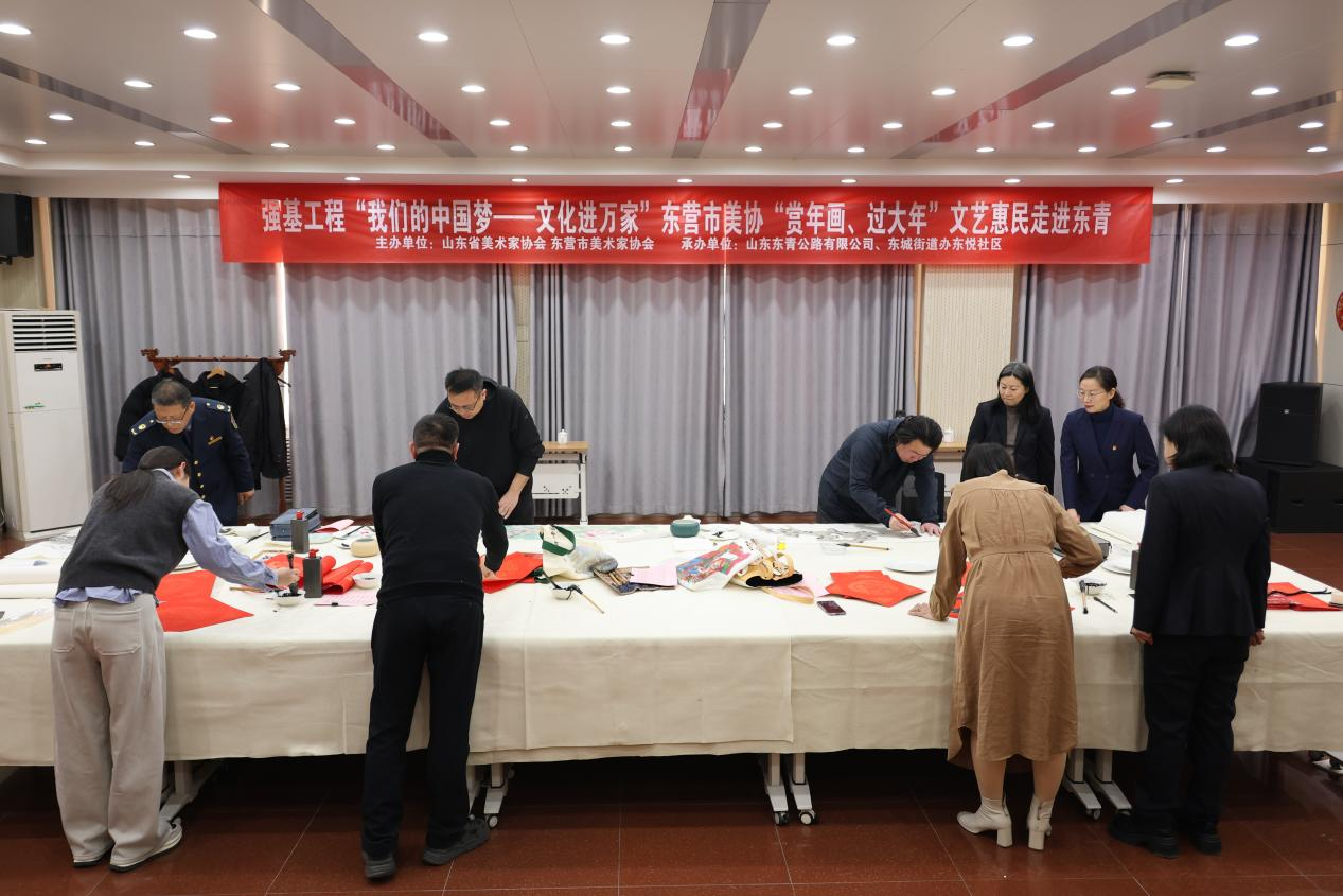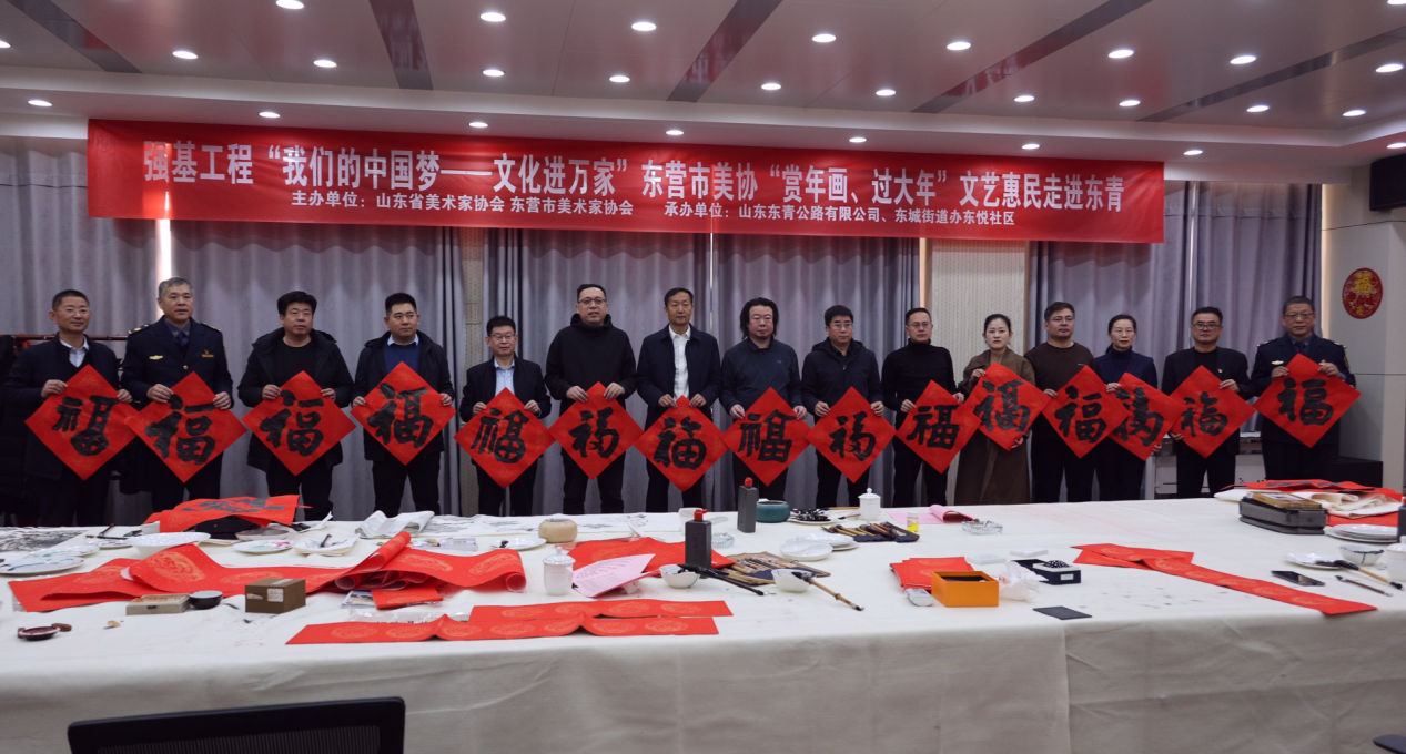 墨香凝福韵,联语贺新春。为弘扬中华优秀传统文化,营造喜庆祥和的新春氛围,1月21日,强基工程“我们的中国梦——文化进万家”东营市美协“赏年画,过大年”文艺惠民走进东青高速活动成功举行。活动由山东省美术家协会、东营市美术家协会主办,山东东青公路有限公司、东城街道东悦社区承办。
