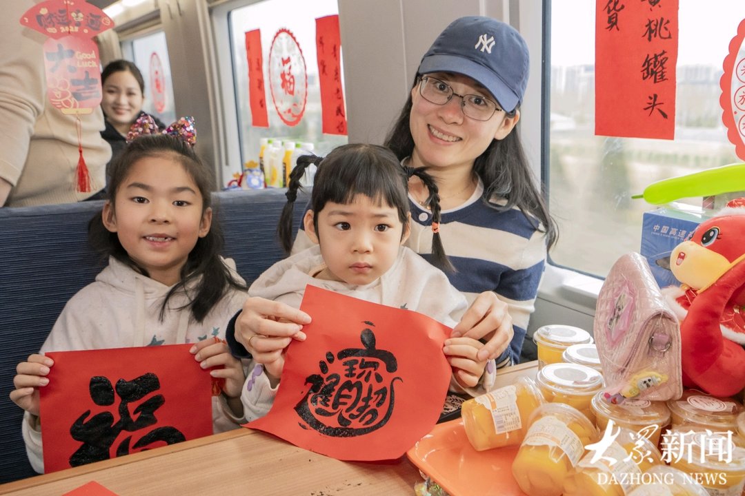 在工作人员的引导下,他们入坐餐车,一起欢度节日。伴随工作人员精心编排的一曲优美舞蹈《万疆》,活动拉开序幕。大家在工作人员指导下,纷纷动手实践一起拓福字,画糖画,感受非遗文化的魅力,为自己和家人祈愿幸福安康。
