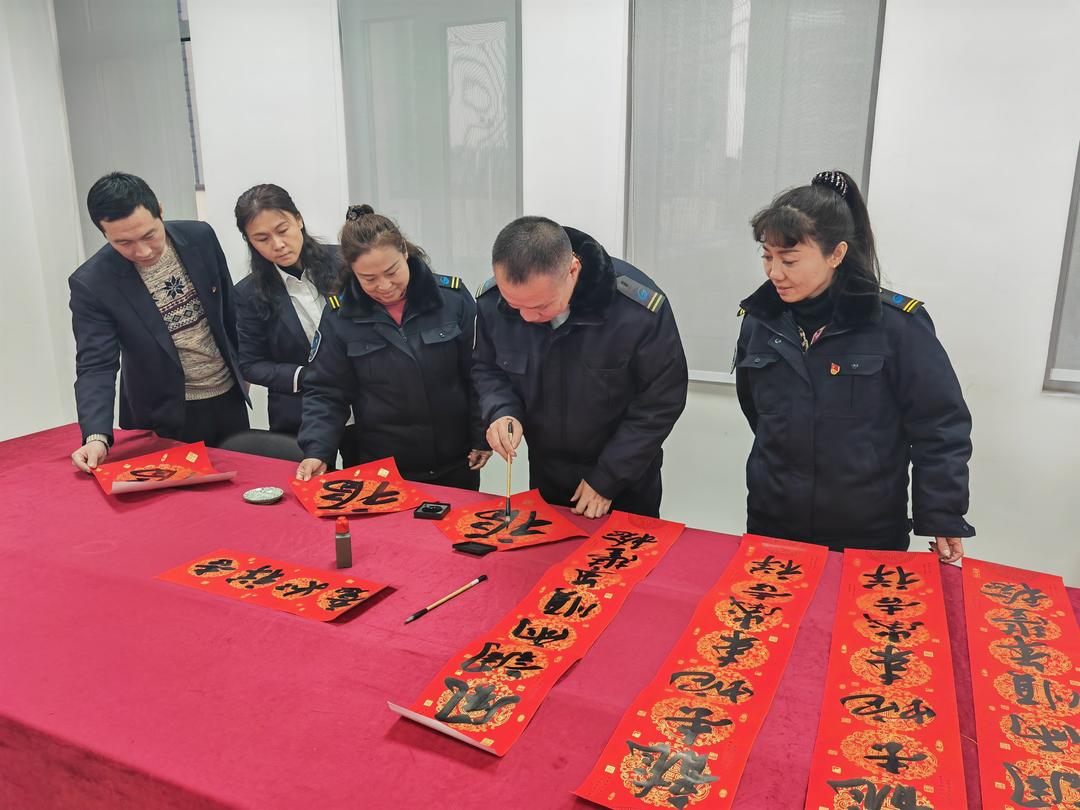活动现场,墨香四溢,热闹非凡。一张张红纸铺开,公交驾驶员们化身书法家,挥毫泼墨,为居民们现场书写春联和福字。笔走龙蛇间,一个个苍劲有力、潇洒飘逸的“福”字跃然纸上,一幅幅寓意吉祥的春联饱含着对新年的美好期许。
