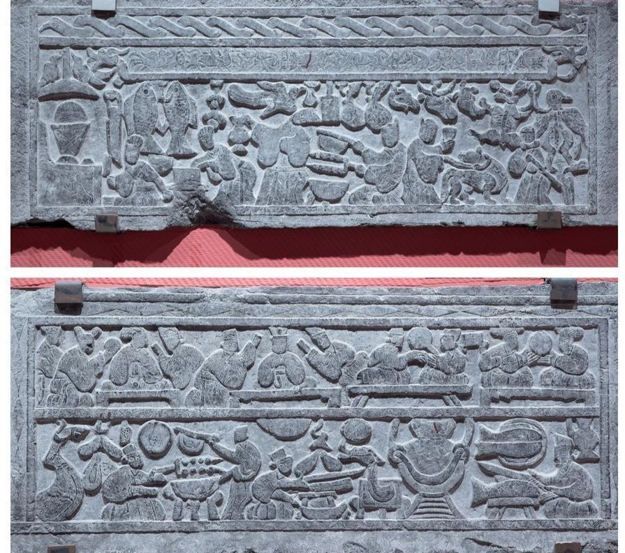 在临沂市五里堡村出土的一座东汉晚期墓葬中,发现了两方刻有“烤肉串”的画像石,就反映了1800多年前鲁南民间的饮食风俗。