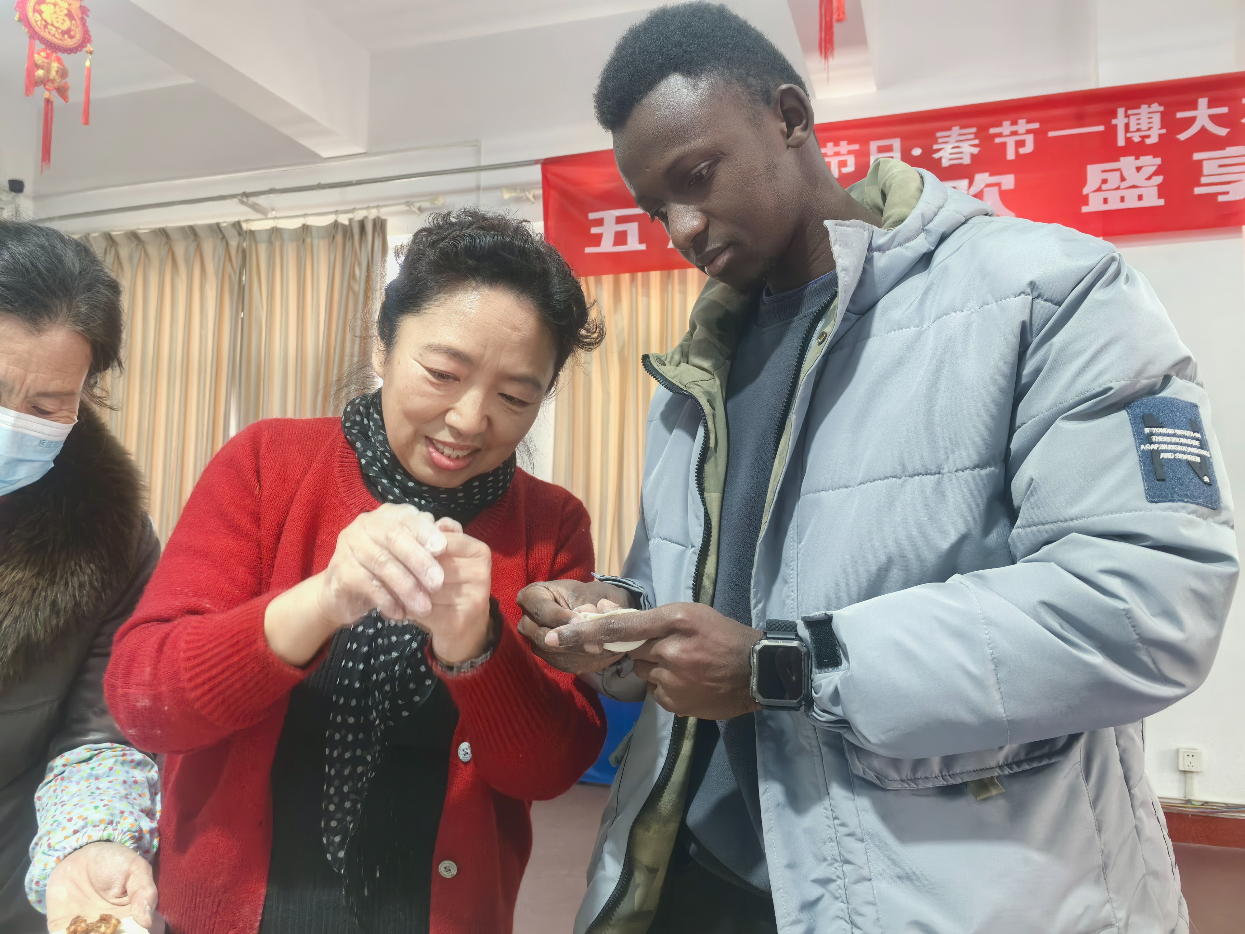 1月24日上午,淄博市张店区马尚街道博大社区举办了我们的节日• 春节之“五湖合家欢 盛享中国情”新时代文明实践活动,邀请了来自不同国家的山东理工大学国际学生与社区居民一起包饺子、品美食,共庆中国新年。此次活动旨在通过亲身体验中国的饮食文化,让国际学生深入了解饺子背后的节日习俗和象征意义,进一步加深他们对中国文化的认识和兴趣。