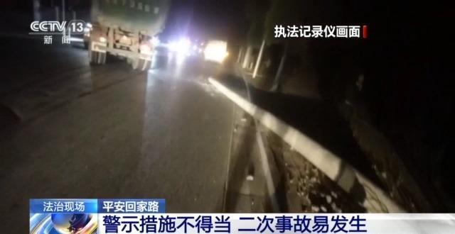 前些天,江西赣州发生了一起事故,一辆小货车的驾驶人因为过度疲劳,车子在行驶过程中开始左摇右摆,最后撞上了路边电线杆。恰好一辆半挂车途经此处,由于天色昏暗,加上前方发生事故的小货车只是打开了双闪灯,没有摆放警示标志,导致半挂车驾驶人没能注意到倾斜在路旁的电线杆,径直撞了上去。
