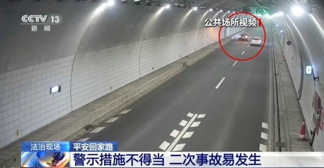 温州市公安局高速交警支队二大队一中队民警 陆双飞:当时这辆轿车发生爆胎之后,车辆实际上是可以继续行驶的,而驾驶人没有第一时间将车辆靠至隧道内的紧急停车带,却是直接停车在快车道上。另外,车辆在发生爆胎停在快车道之后,驾驶人也没有第一时间在车辆后方设置警示牌,最后导致事故的发生。