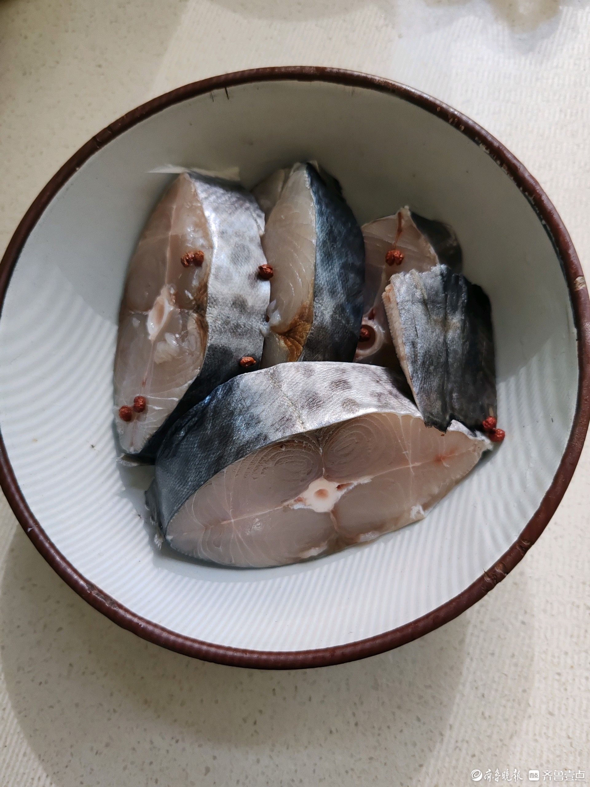 1、将鲅鱼洗净切块,用料酒、盐、花椒,姜片腌制20分钟让其入味,备用。